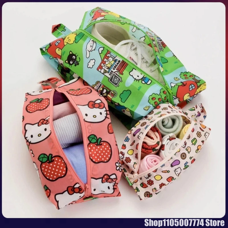 3-teiliges Set Kawaii HelloKitty Aufbewahrungstaschen Niedliche Cartoon Tragbare Schuh-, Socken- und Kleider-Aufbewahrungstaschen für Reise und Zuhause Großhandel Geschenke
