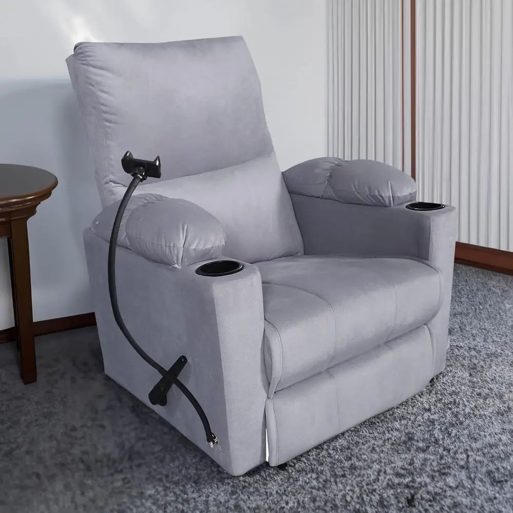 Kinoartiger Relaxsessel mit Getränkehaltern - Silberner Samt Classic Tyson PLUS