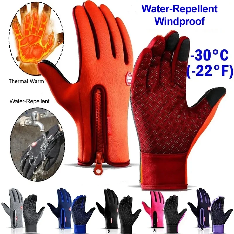 Touchscreen-Winter-warme Handschuhe für Männer und Frauen, rutschfest, wasserabweisend, winddicht, Radfahren, Wandern, Camping, Fahren, Handschuhe mit Reißverschluss