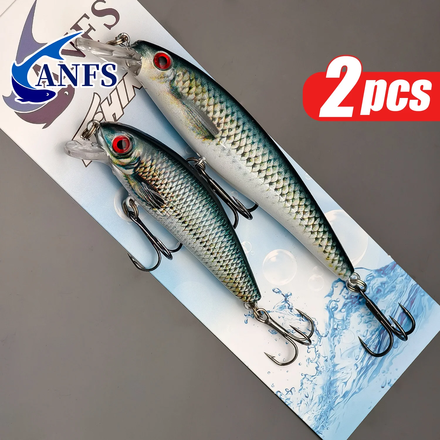 2 Stück ANFS Bunte sinkende Minnow-Angelköder – künstliche Köder mit lebendigen Mustern zum Angeln im Süßwasser und Salzwasser