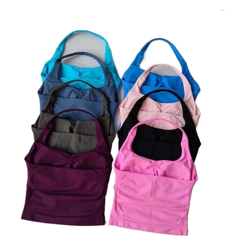Nahtloses Halter-Top mit langen Trägern, Sport-Top für Damen mit integriertem BH, herausnehmbaren Cups, Activewear, Yoga-Tanktop