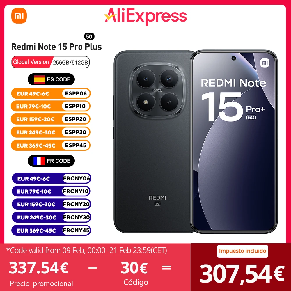 Xiaomi Redmi Note 15 Pro+ 5G Globale Version 256GB/512GB Snapdragon 7s Gen 4, AMOLED-Display 6,83 Zoll 1,5K, 120Hz, 200MP-Kamera, IP68, NFC, Ohne Ladegerät