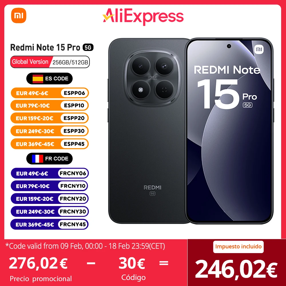 Xiaomi Redmi Note 15 Pro 5G Europäische Version 256GB/512GB MTK Dimensity 7400-Ultra, 6,83 Zoll 1,5K AMOLED-Display, 120Hz, 200MP OIS, IP68, NFC