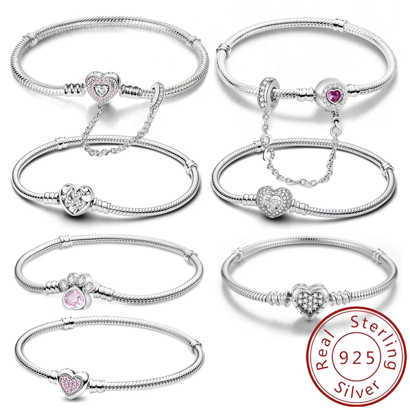 925 Sterling Silber Personalisiertes Einfaches Liebesherz-Krallenarmband DIY Perlenherstellung Passend für Original-Armbänder Feiner Schmuck Geschenk