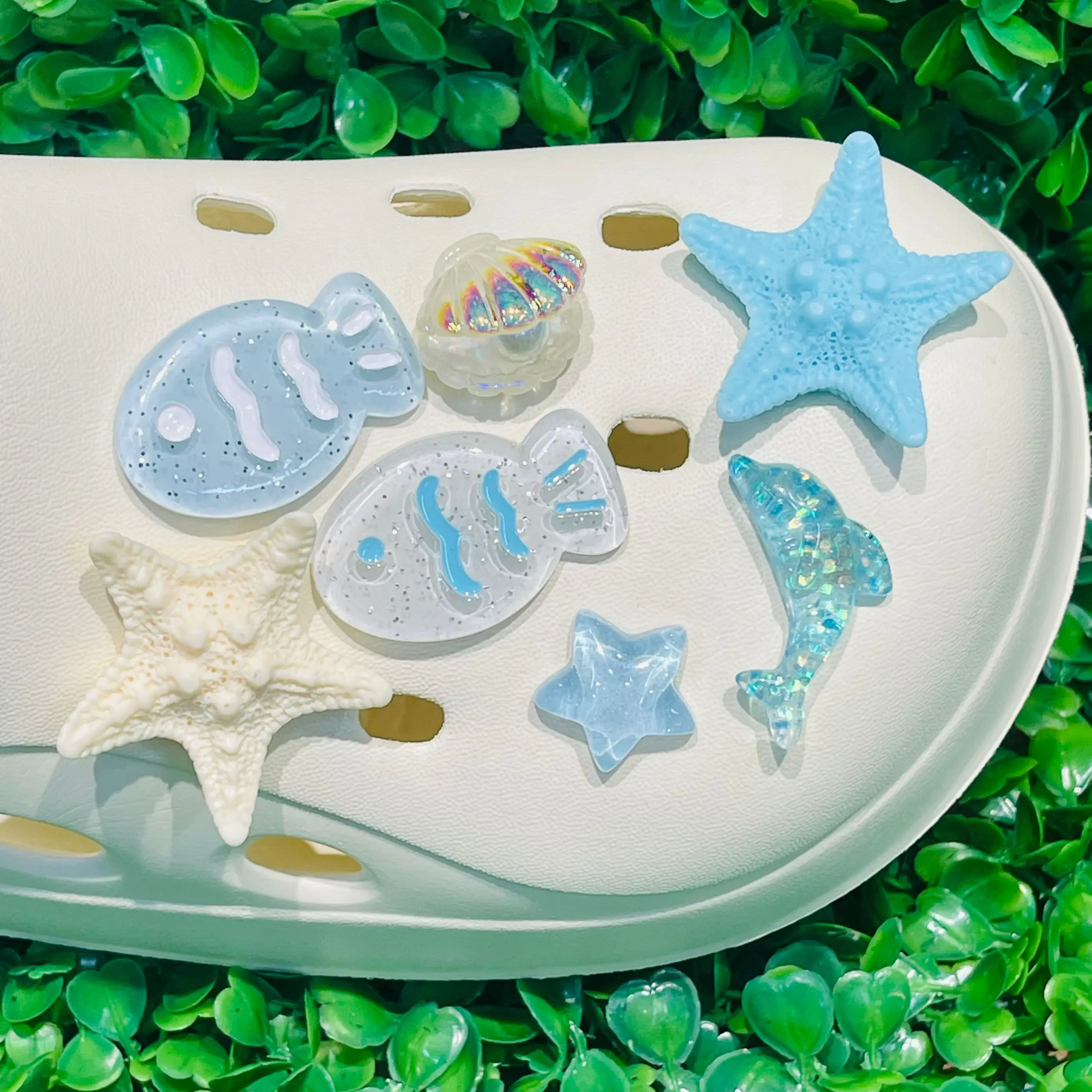 1-6 Stück Blauer Delphin Wal Harz Schuhe Schnalle Charms Jungen Mädchen Seestern Entzückende Slipper Dekorationen DIY Rucksack