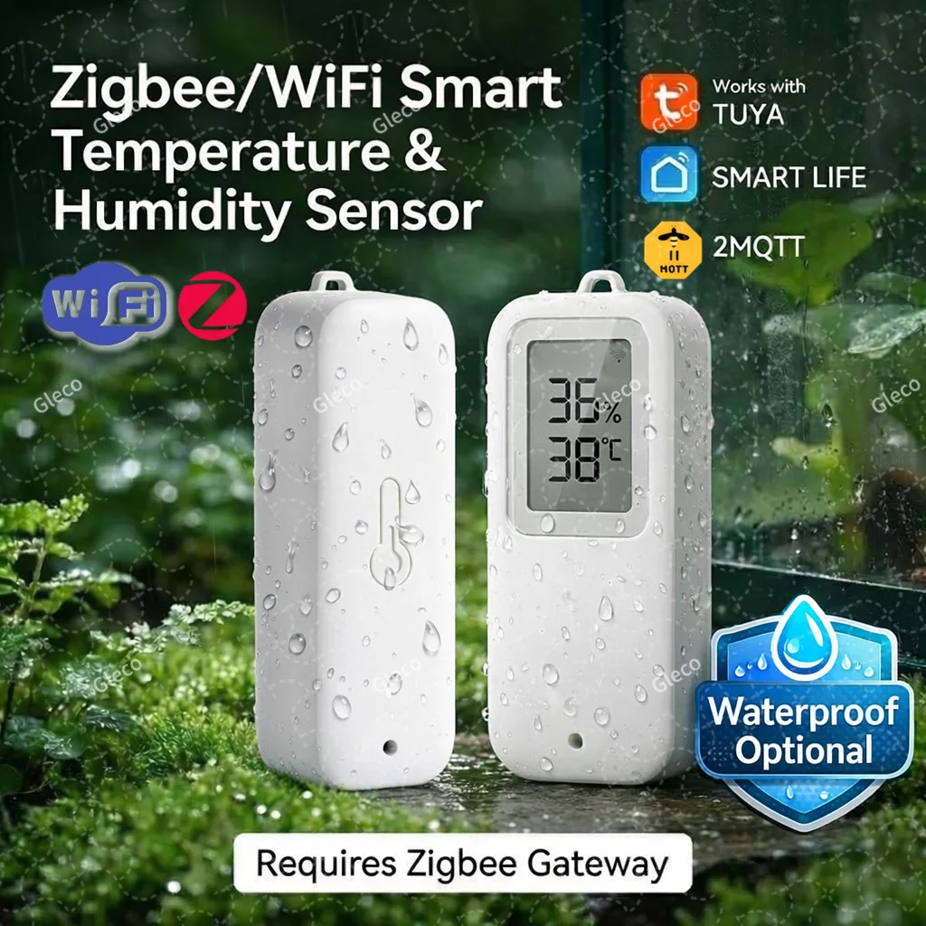 Tuya Zigbee Wifi Temperatur- und Feuchtigkeitssensor, optional wasserdichtes LCD-Smart-Thermometer und Hygrometer für 2MQTT Smart Life APP