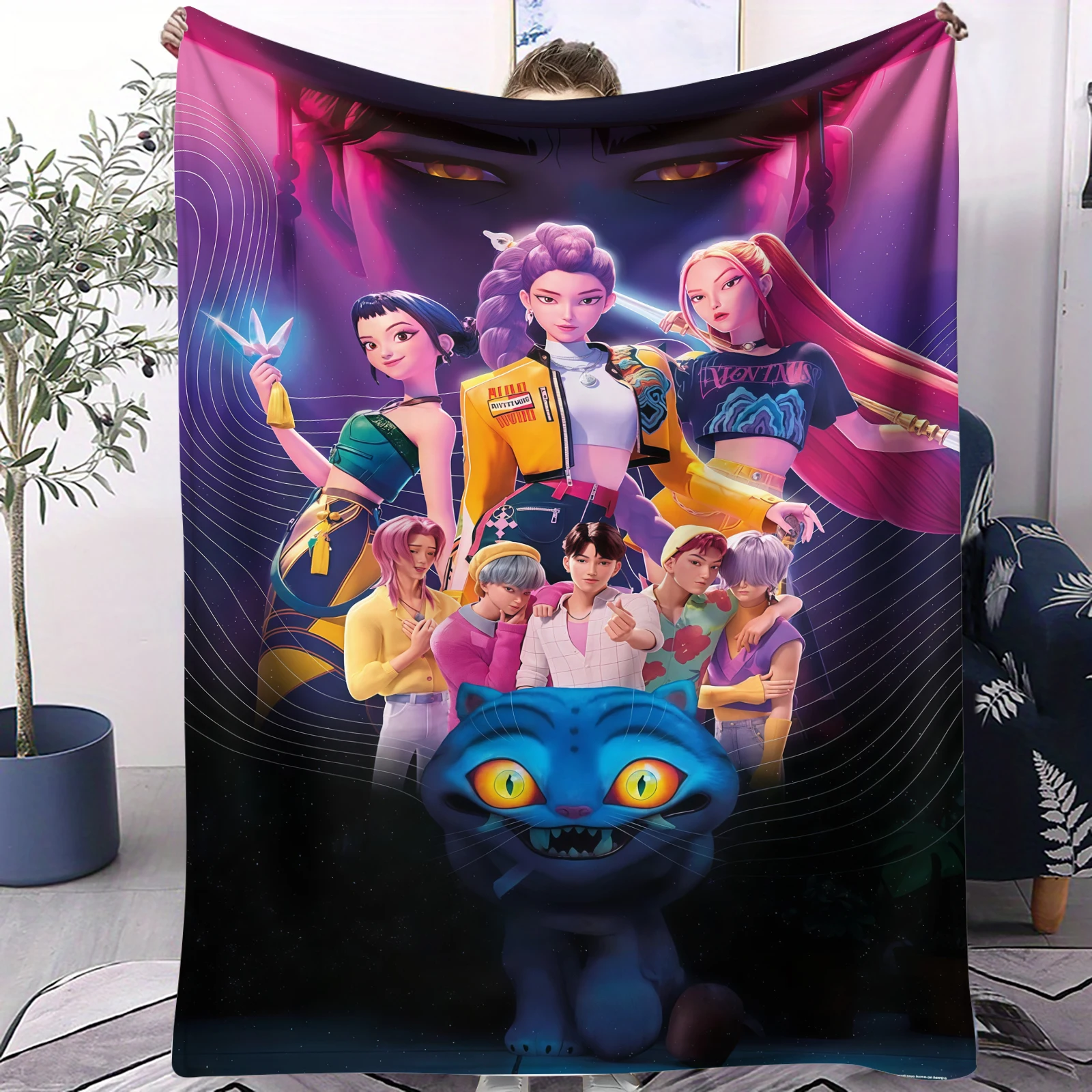 K-Pop Devil Hunter Gemütliche, superweiche Flanelldecke, schöne Anime-Figur, warme, flauschige Überwurfdecke für Wohnzimmer, Heimdekoration