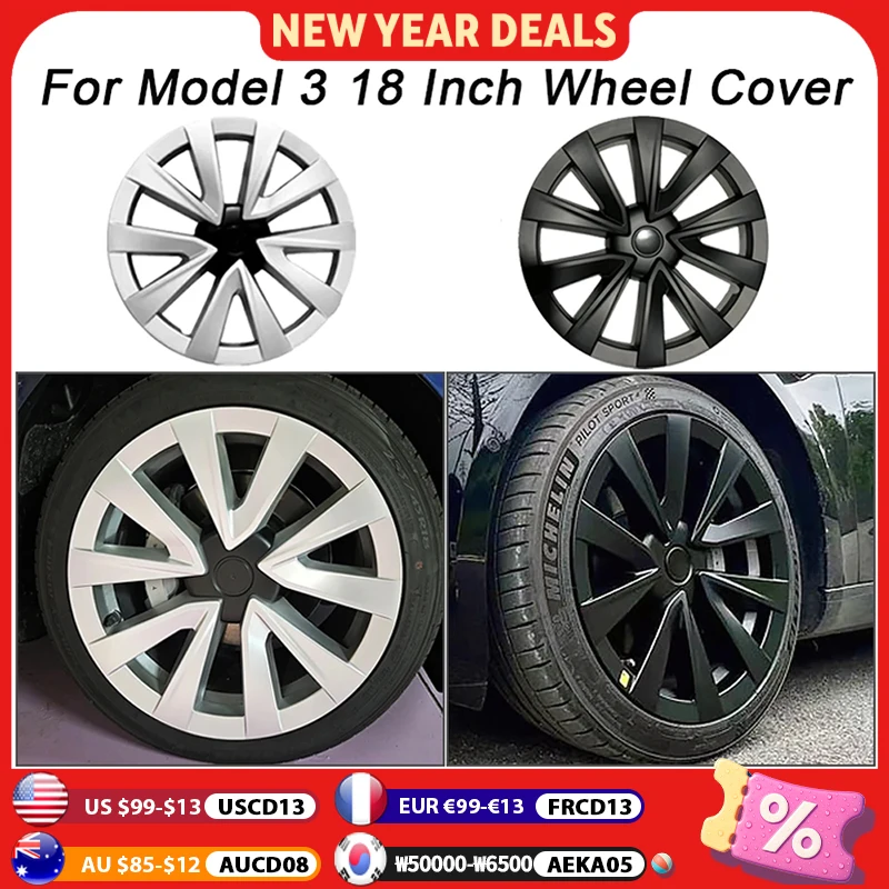 4PCS Radkappe für Ersatz Tesla Modell 3 Radabdeckung Automobil 18 Zoll Radkappe Vollfelgenabdeckung Zubehör 2018-2023 Radkappe