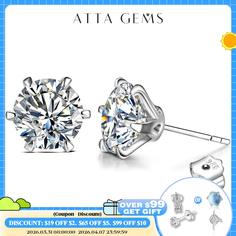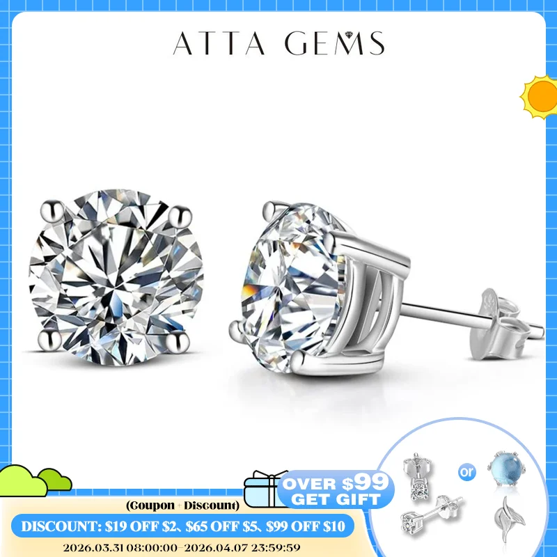 ATTAGEMS 2 Carat 8,0mm D Farbe Moissanite Stud Ohrringe Für Frauen Top Qualität 100% 925 Sterling Silber Funkelnde Hochzeit schmuck