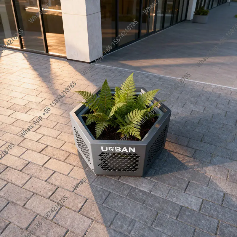 Blumenkasten-Kombination aus Schmiedeeisen für den Außenbereich, Café-Trennwand, Zaun für Gewerbestraßen, quadratischer Restaurant-Blumenbeetzaun