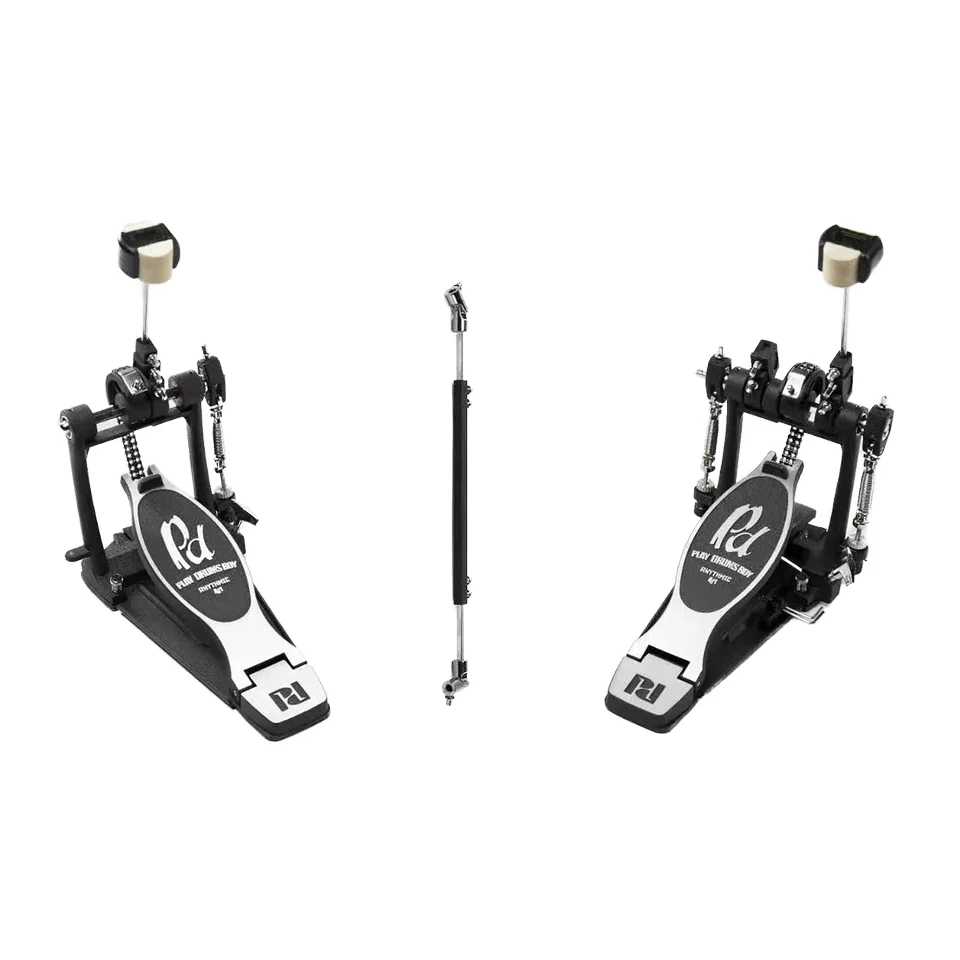 P1000 Professionelles Dual-Bass-Drum-Pedal mit Direkt-/Kettenantriebsstütze, verstellbarer Rührbesen, tragbares Zubehör aus Aluminium/Legierung