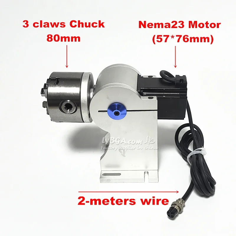 LY 80 mm 3-Backenfutter, Drehachse, Höhe 170 mm, Nema23-Motor, A-Achse für UV-CO2-Glasfaser-Lasergravur, Markierungsmaschine