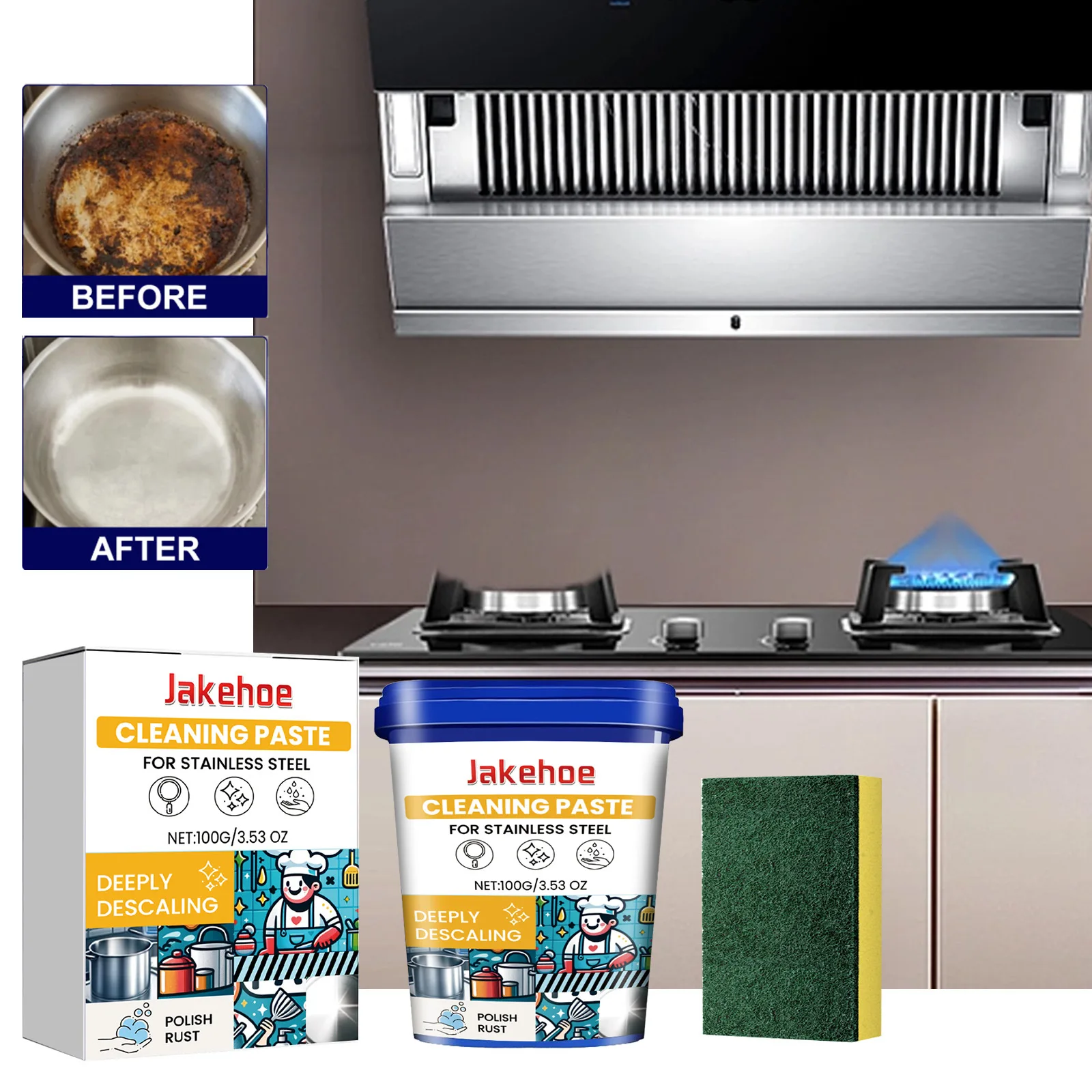 Kochgeschirr-Reinigungscreme aus Edelstahl – Hilfsmittel zur Reduzierung schwarzer Skalen, Rostflecken, Polieren, verbessert den Glanz für Metallutensilien