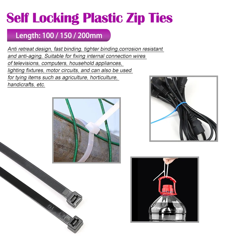 Selbstsichernde Kunststoff-Kabelbinder, Länge 100/150/200 mm, Drahtbindung, Wickelgurte, Organizer, DIY-Kabelverschluss, Bündelung, Gürtel, Kabelbinder