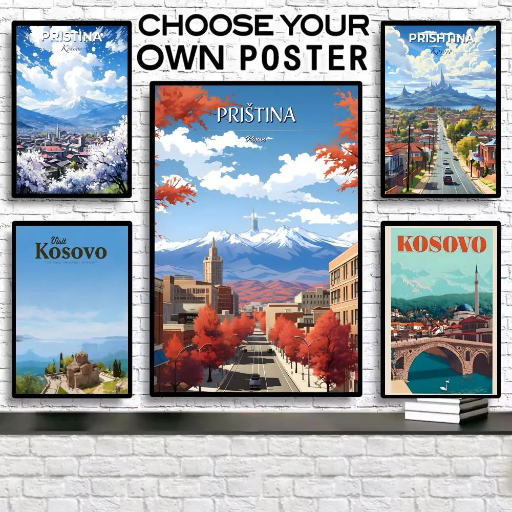 Pretty City K-Kosovo Gemälde, Kalligraphie, Vintage-Poster, Leinwand, rahmenlose Wandkunst, perfekt für Flur, Heimdekoration, Urlaub
