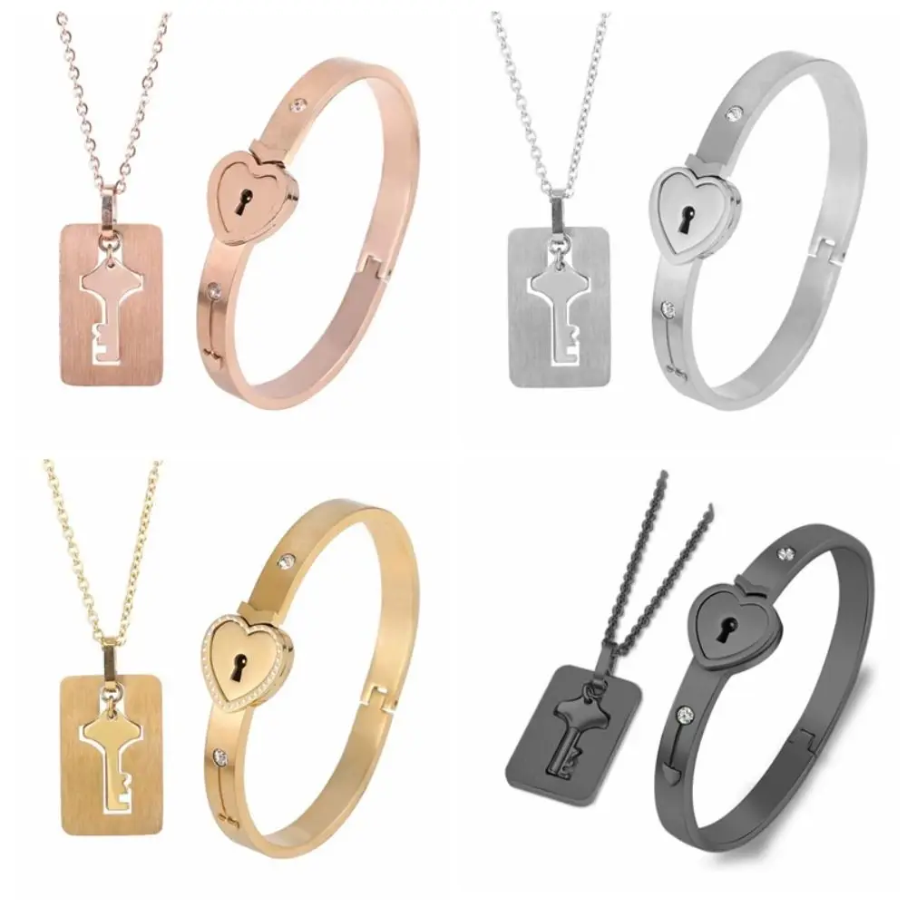Edelstahl Paar Schmuck Armband Schloss und Schlüssel passende Herz Schloss Armbänder für Liebhaber Metall Armreifen Schlüssel Anhänger Halskette