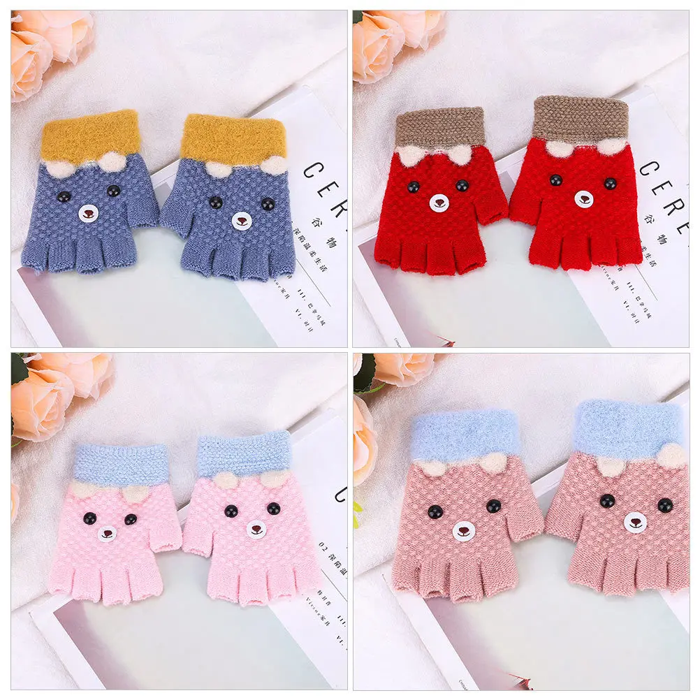 4 Paar warme Kinderhandschuhe, halbe Finger, gestricktes Design, gemütlich, leicht, für die Kleinen, ideal zum Schreiben, für den täglichen Gebrauch, fingerlos