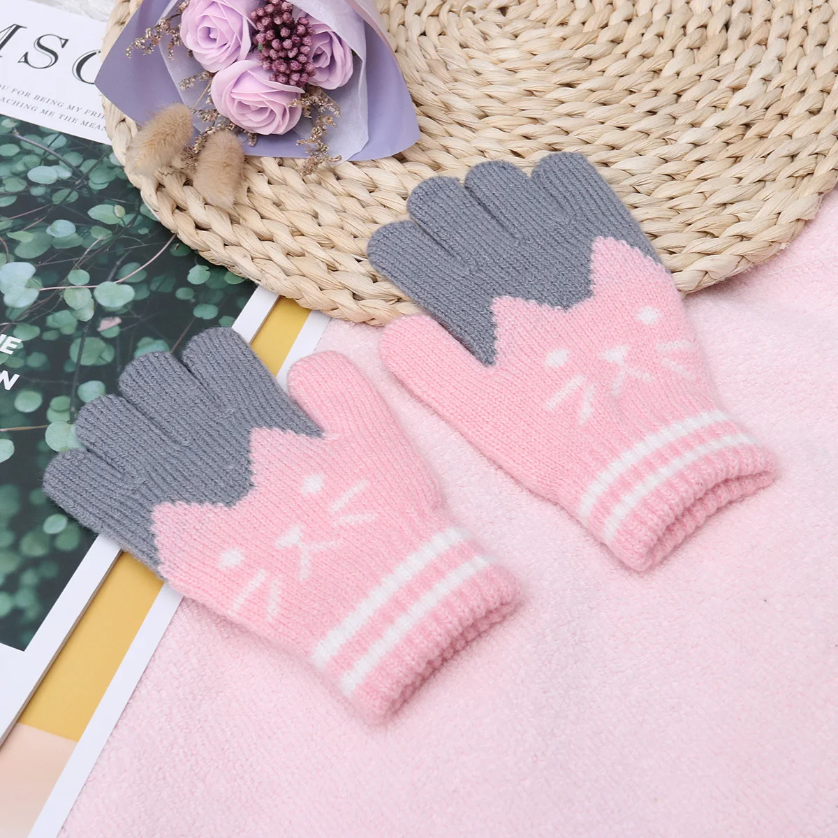 Koreanischen Stil Gestrickte Handschuhe Für Mädchen Winter Warme Verdickung Plüsch Fünf-finger Kinder Handschuhe Nette Bogen kinder Mode handschuh Neue