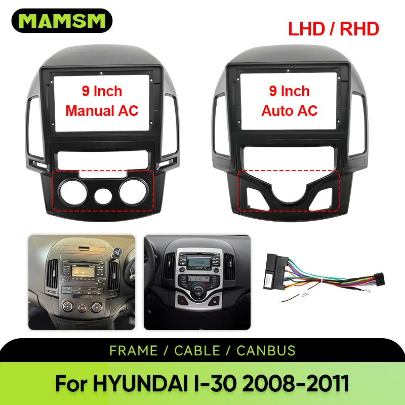 MAMSM 9 ZOLL Auto Fascia Für 2008-2011 HYUNDAI I-30 9 ZOLL Auto//Manuelle AC Radio GPS Fascias Panel Steuergerät Bildschirm Rahmen Kabel