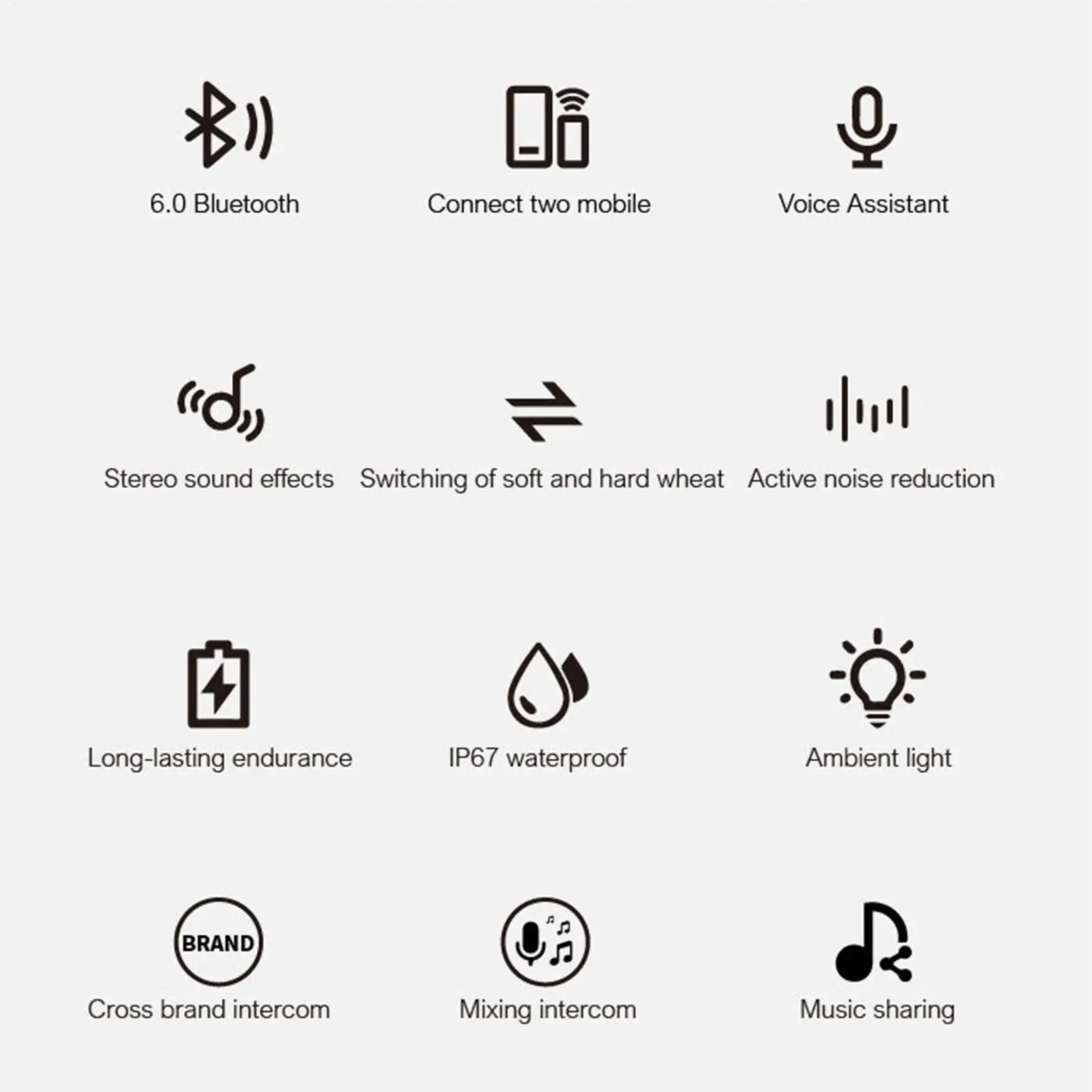 Neue Motorrad Headset Helm Headset BT6.0 Unterstützung FM Radio 1000 mAh Wasserdichte Kopfhörer Mit Umgebungs Licht Musik Player Lautsprecher