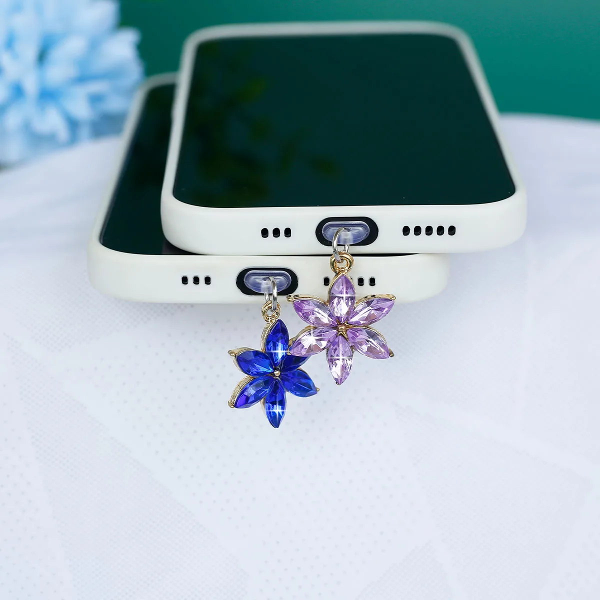 Handy Staub Stecker Anhänger Kristall Sechseckige Blume Zubehör Dekoration Für Iphone Typ-c Port Mit Lanyard Um Verlust zu verhindern