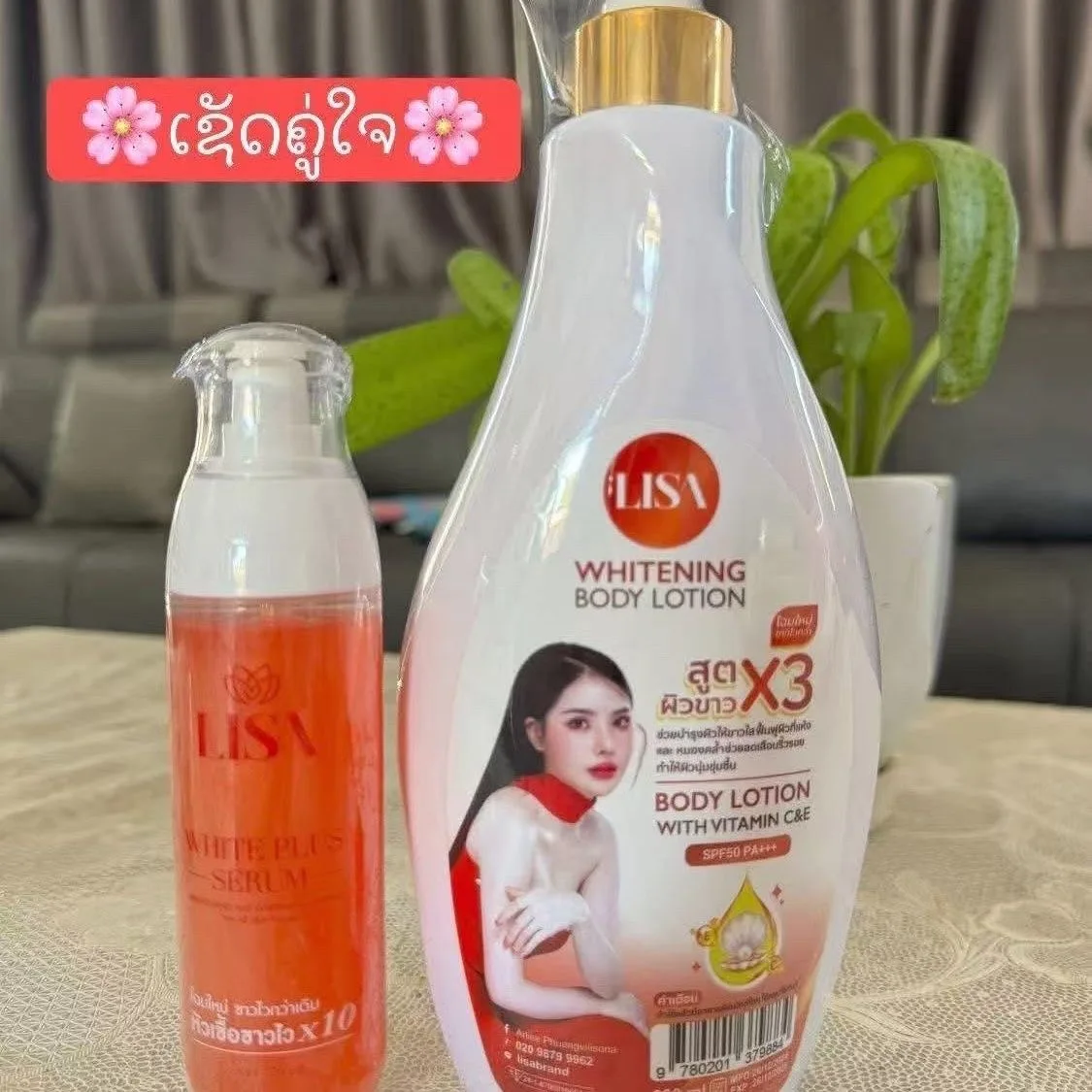 Thai Celebrity LISA Whitening Serum 120 ml & Whitening Body Lotion 600 ml 2-in-1-Set mit Vitamin C E & SPF50 PA+++ für die Körperpflege