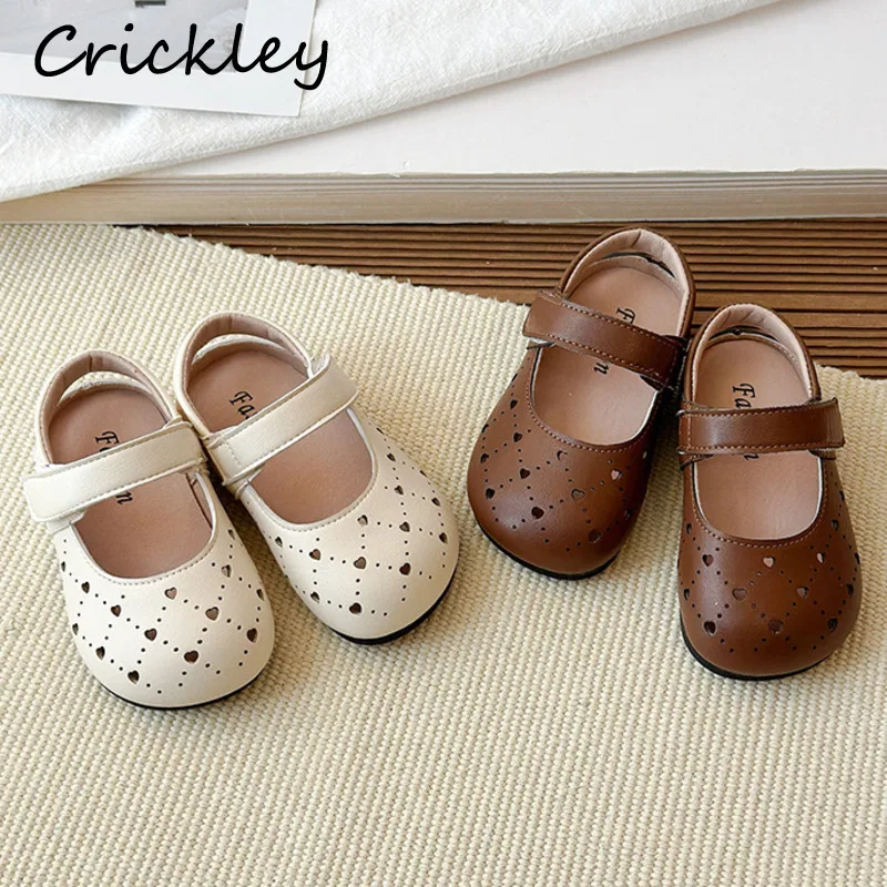 Frühling Sommer Einfarbige PU-Kinderschuhe mit Herz-Ausschnitt Mädchen Prinzessinnen-Schuhe mit Klettverschluss Weiche Atmungsaktive Kindersandalen