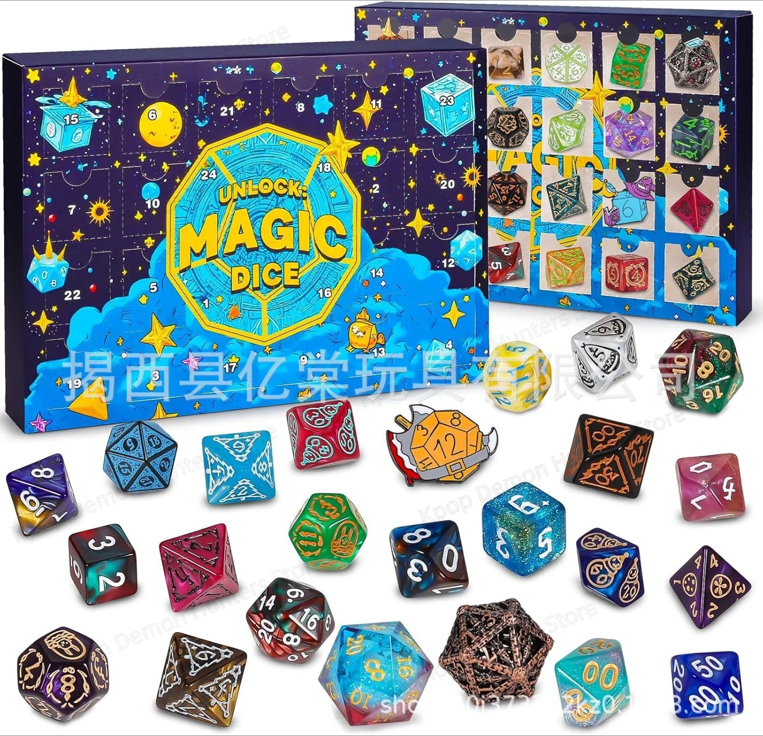 Würfel-Adventskalender 2025, Mystery-Würfel-Set, Weihnachts-Adventskalender für Erwachsene, Männer, Teenager, Überraschungs-D&D-Geschenk, Würfelrollen-Tischspiel