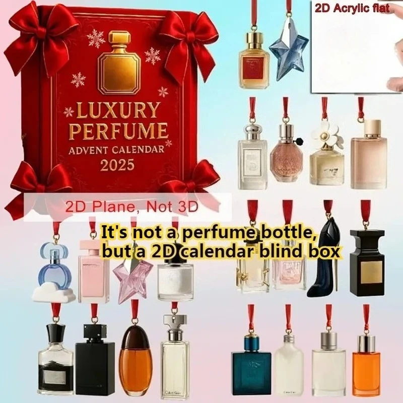 Kalender 2025, Adventskalender, 24 Tage, Countdown-Kalender, Blindbox, 2D-Acryl-Anhänger, Weihnachtsgeschenke (keine Parfümflasche)