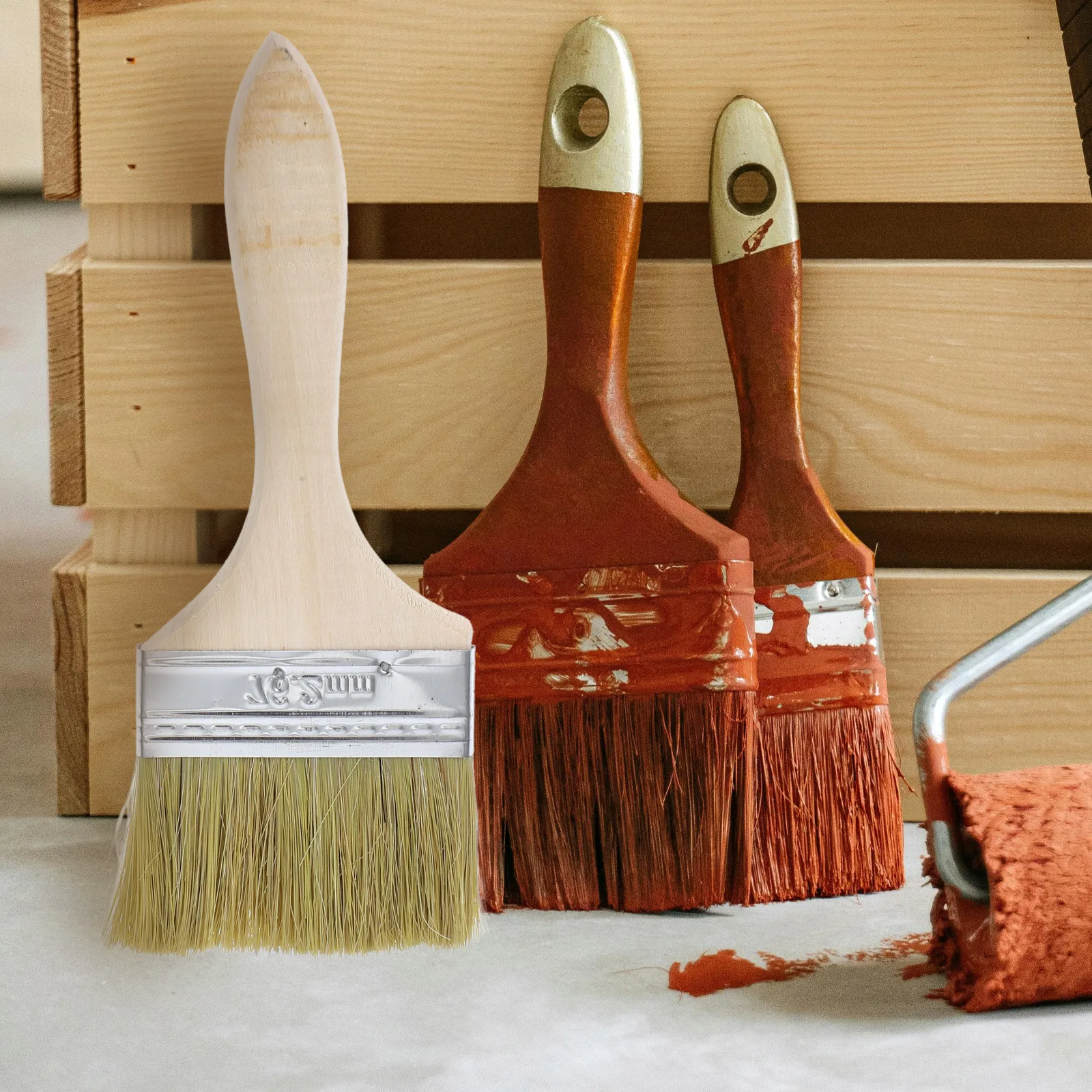 5-teiliger Pinsel mit Holzgriff, Grillpinsel, 2/3/7 Zoll, weiches Haar, Malpinsel für Wandmöbel, Farbe und Holzflecken, Werkzeugset