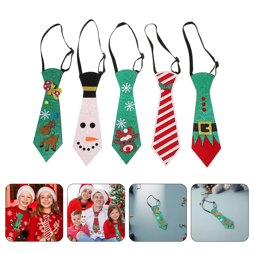 5 Stück Weihnachtskrawatten für Kinder, Urlaub, Party, Schneemann, Rentiermuster, bequem, weich, für Winterfeiern