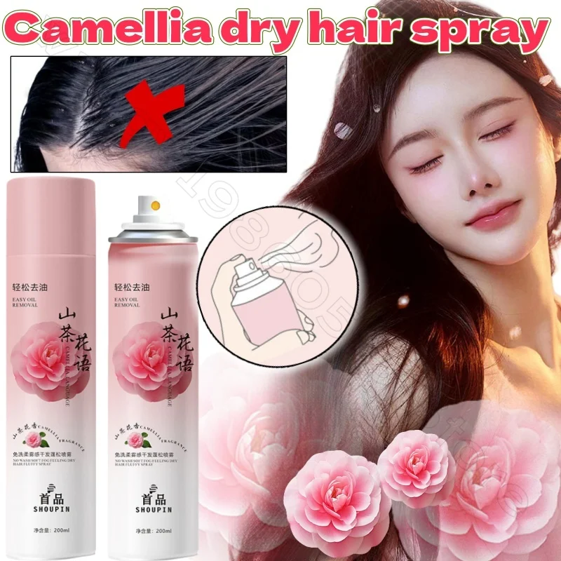 Camellia Duftendes, flauschiges Trockenhaarspray, 200 ml, freies Haar, schnelle Ölkontrolle, flauschiges Artefakt, trockenes, hohes Schädelhaarspray, 200 ml