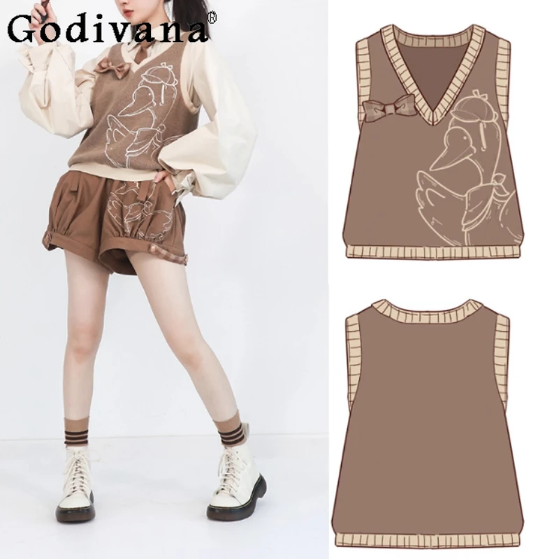 Frühling Herbst Neue Lolita Retro Süße Bogen V-ausschnitt Pullover Weste Nette Frauen Mode Vielseitig Altersreduzierung College Gestrickte Westen