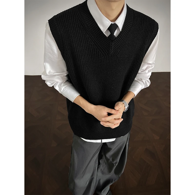 Herbst Schwarz Pullover Weste Männer Warme Mode Beiläufige Gestrickte Pullover Männer Koreanische Lose Ärmellose Pullover Herren Jumper Kleidung