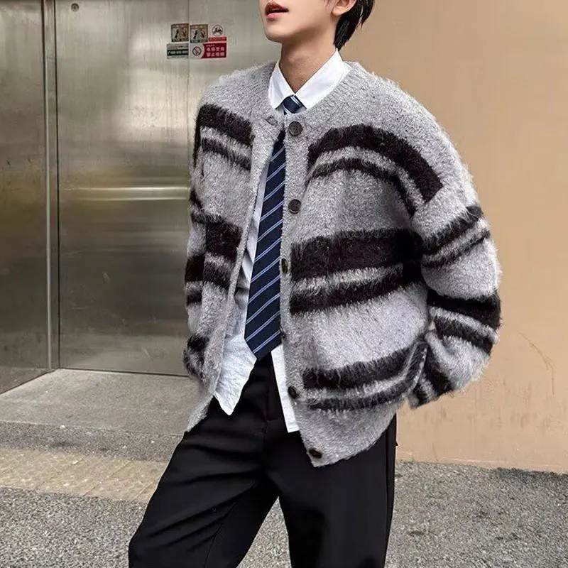 Junge Stil Vintage Gestreifte Strickjacke männer Kleidung V-ausschnitt Lose Herbst Winter Neue Amerikanische Casual Langarm Pullover