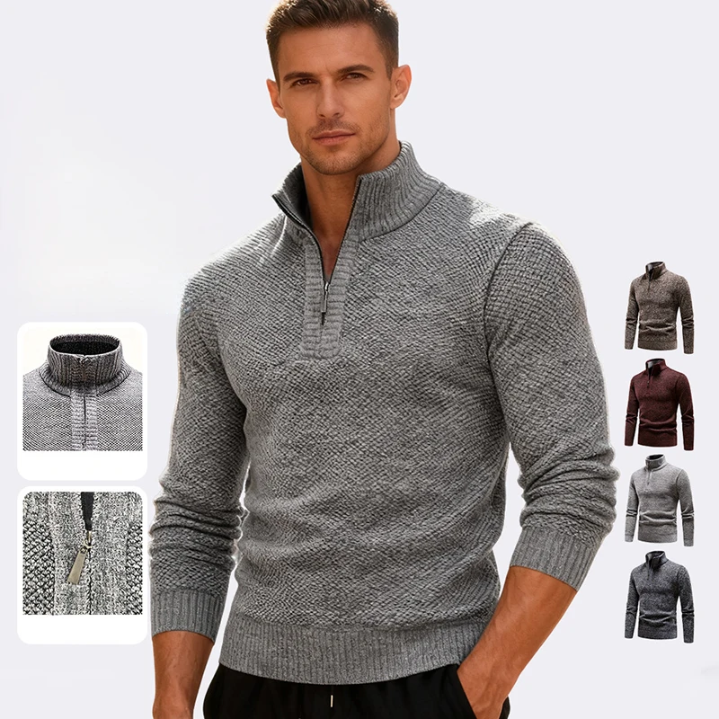 Amerikanischer Reißverschluss-Stehkragenpullover für Herren, Herbst-Winter-Streetwear, Verdickter Warmer Strickpullover, Lässiger Sport-Jumper