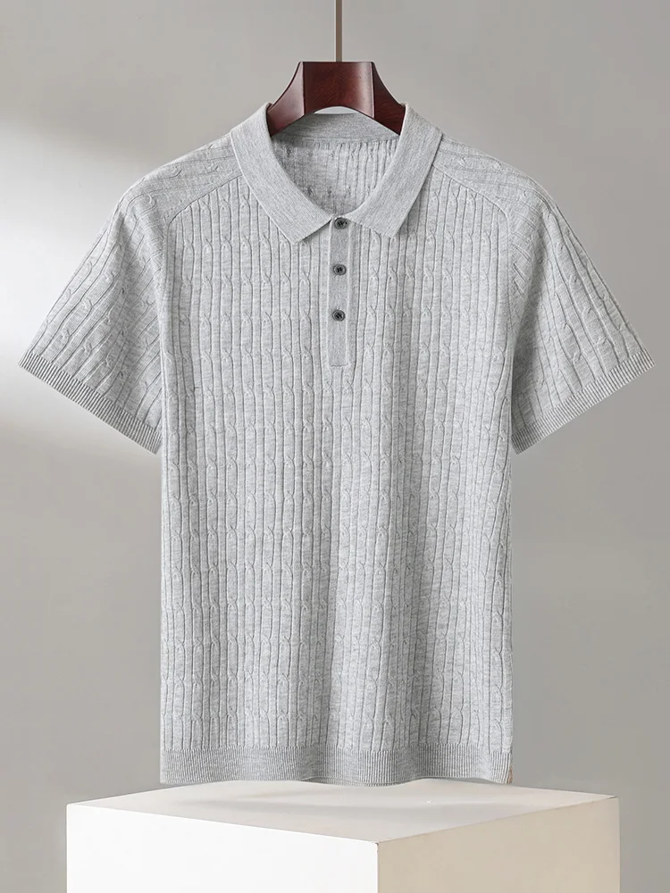 Herren Polokragen Kurzarm-Pullover Sommer Neu Lyocell Hochwertig Business Casual Revers Halbarm-Pullover Oberteil