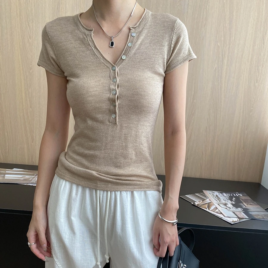 2026 Pullover Damen Oberteile Strickpullover V-Ausschnitt Kurzarm Jumper Y2k Streetwear Elegante Strickwaren Slim Fit Casual Herbst Winter