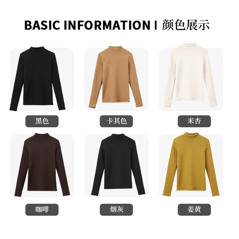 Fleece-Gefüttertes Verdicktes Winter-Warmes Geripptes Halbrollkragen-Unterhemd für Damen, Figurbetontes Langarm-Oberteil mit Halbhohem Kragen und Stilvollem Flair