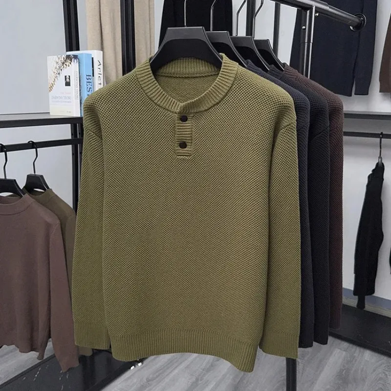 Pullover Herren Strickwaren Winter Baumwolle Wolle Rundhals Zweiknopf-Design Basis-Layer Neue Herbstsaison Herrenbekleidung