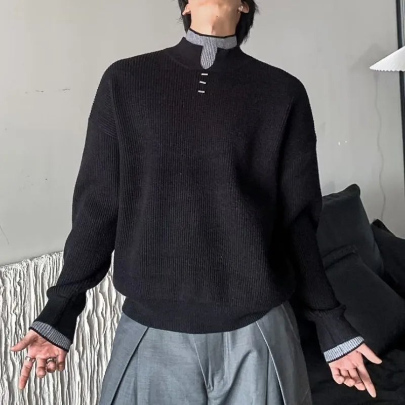 High Neck Fake Zweiteiliger Kontrastpullover für Herren Herbst Winter Beliebte einfache lässige Strickpullover Top Nische Coole Pullover