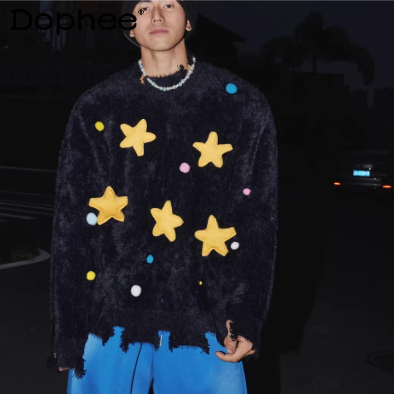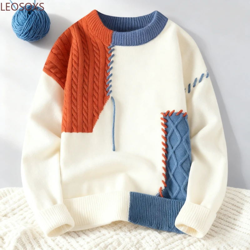 Lässiger gestreifter Herrenpullover für Herbst und Winter, farbblockierter Rundhalsausschnitt, bestickte Herren-Pullover in europäischer Größe, gestrickt