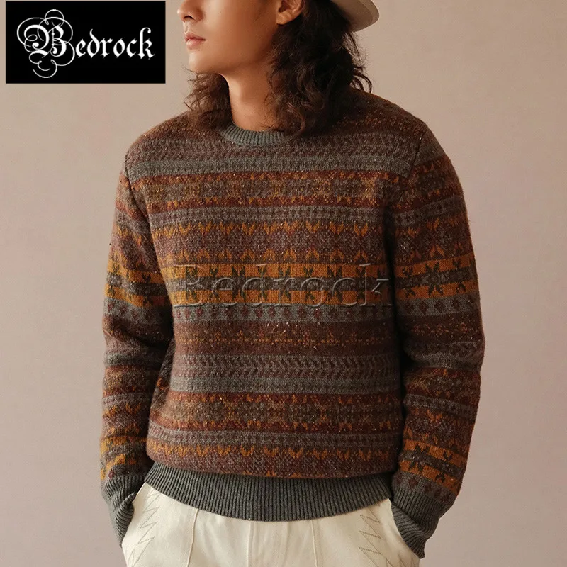MBBCAR Herren Fair Isle Pullover IVY Braun Rundhals Langarm Vintage Winter Wollpullover Landhausstil Wärmerpullover