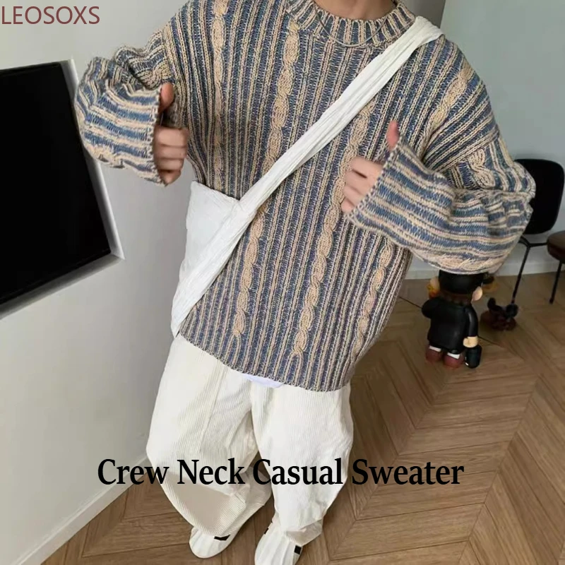 Gestreifter Vintage-Pullover mit Farbblockierung, High-End-Feeling, lässiges Strickoberteil im koreanischen Stil, Herbst/Winter für Herren, Rundhals-Design