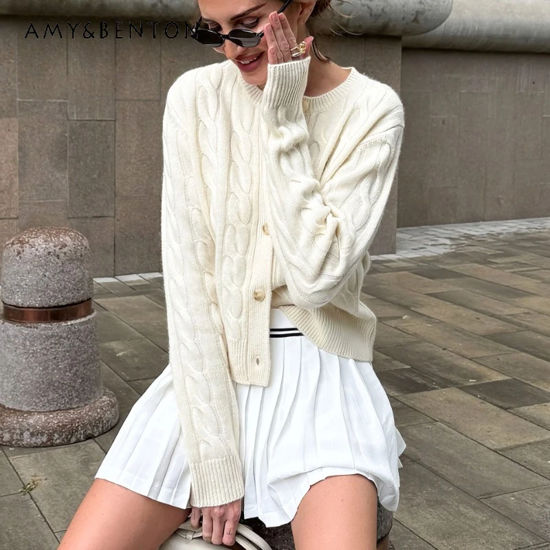 2025 Koreanische Stil Mode Lange hülse häkeln Top Damen Strickjacken für Frauen Kleidung Braun Korean Style Fashion Plus Size Gestellte Langarm häkeln Damen Strickjacken für Frauen Kleidung Gestrickte Top Pullover Frau