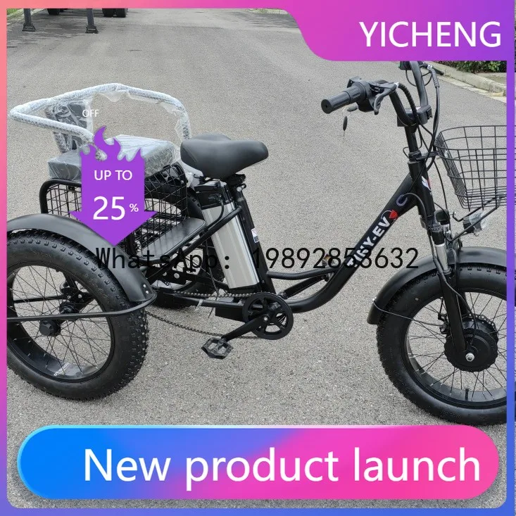HYS Schneegemüsekorb-Transportwagen mit Rücksitz für Personen- und Lastentransport, Lithium-Batterie-Dreirad