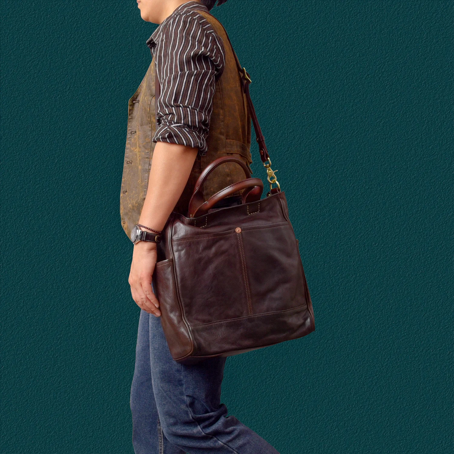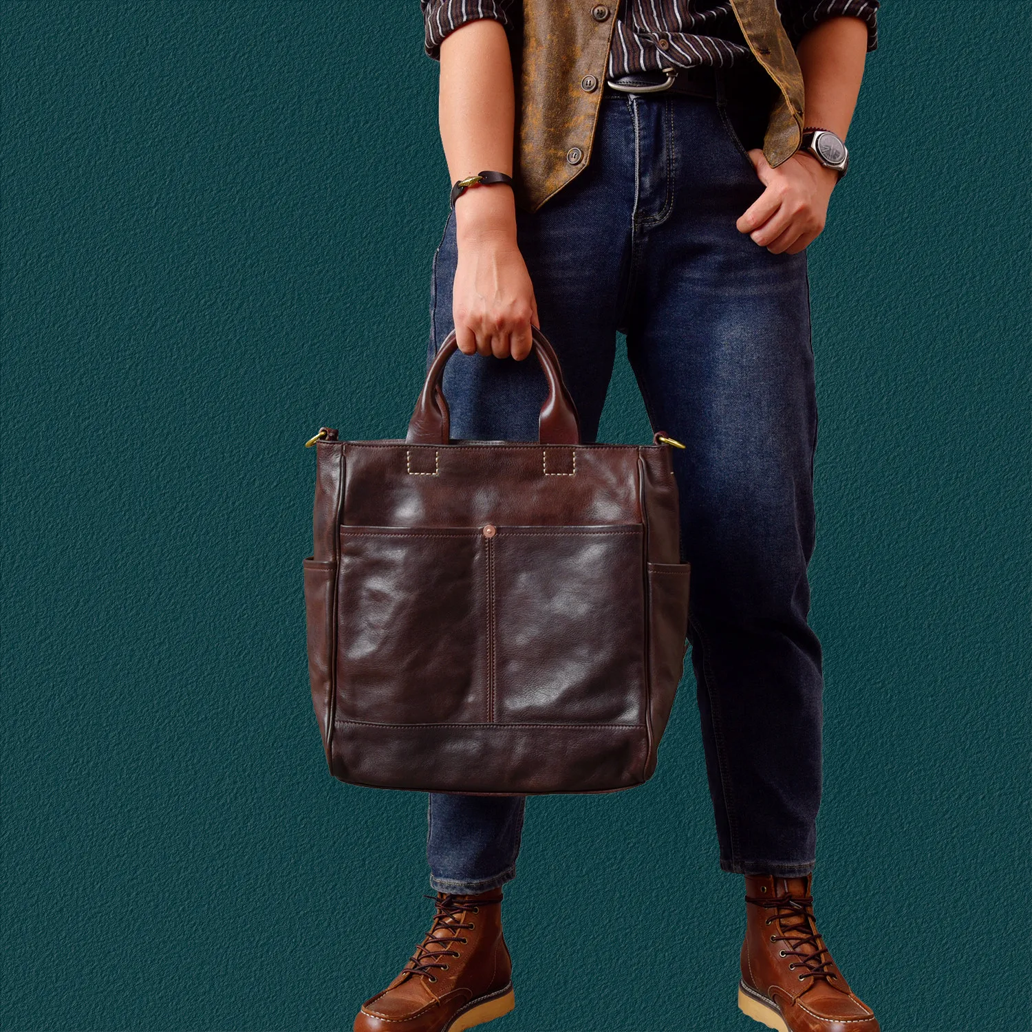 Modische Designer-Organizer-Taschen aus handgefertigtem echtem Leder für Herren, Outdoor-Reisetaschen, luxuriöse handgefertigte Handtaschen aus pflanzlich gegerbtem Rindsleder.