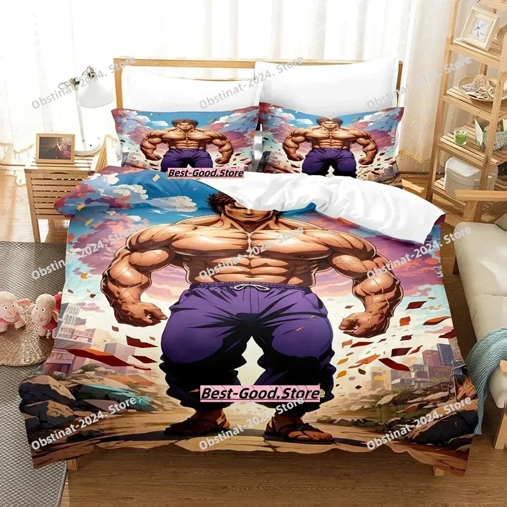 Baki Hanma 3D-Druck Anime Bedrucktes Bettset Bettbezug Kissenbezug Bettwäsche-Set Bettwäsche-Bettlaken Bettbezug Full Queen King Size