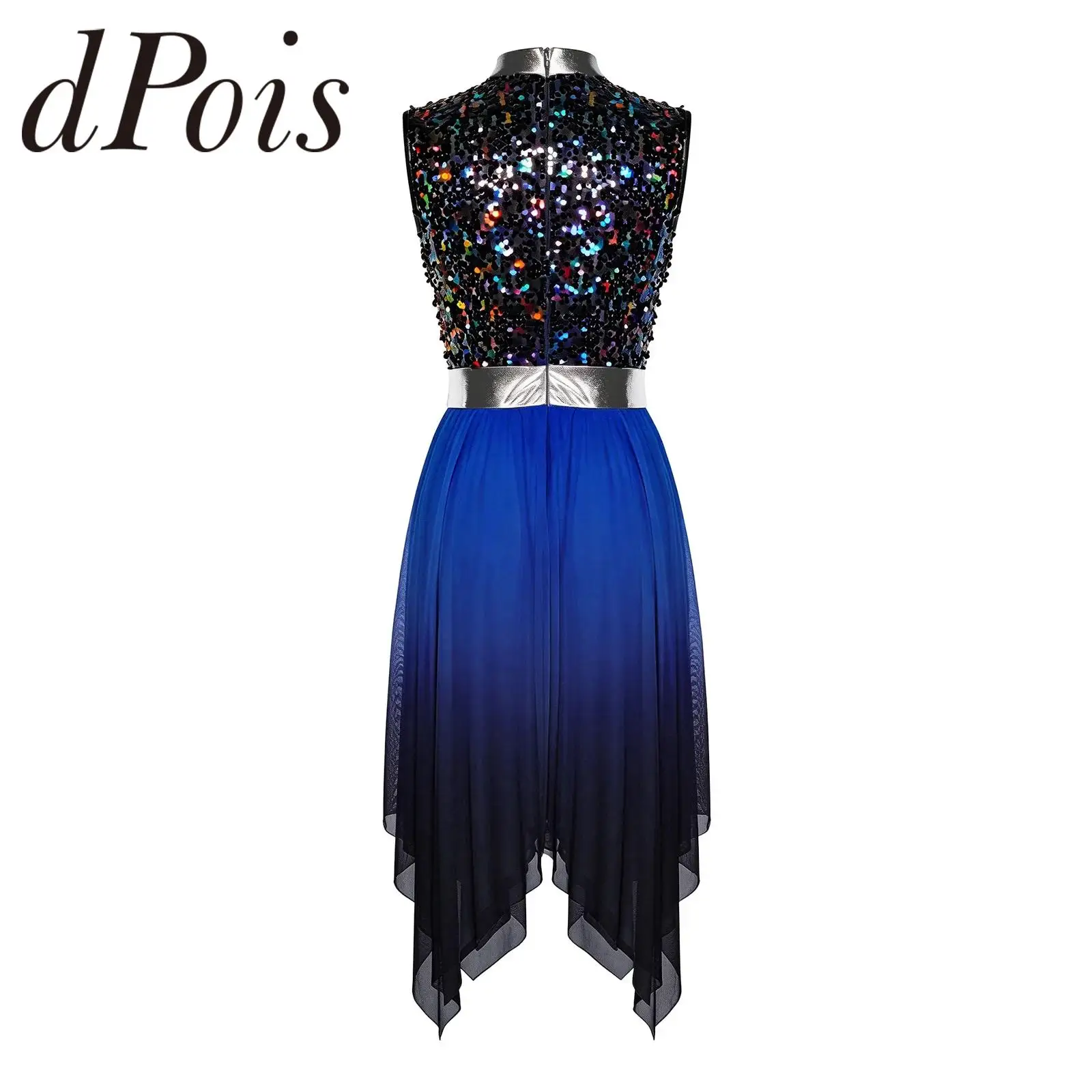 Modernes zeitgenössisches Tanzkostüm für Damen, ärmelloses liturgisches Lobpreistanzkleid, ärmelloses Farbblock-Mesh-Trikotkleid
