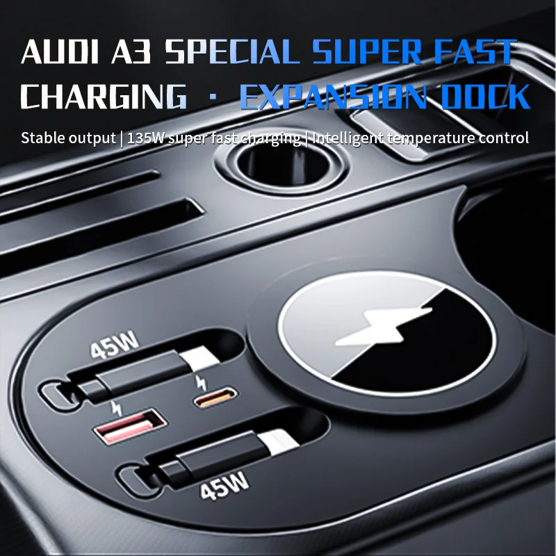 Für Audi A3 A3L S3 2021-2025: Kabellose Ladestation mit ausziehbarem USB-C-Kabel für den Mittelkonsolenbereich – Auto-Innenausstattung